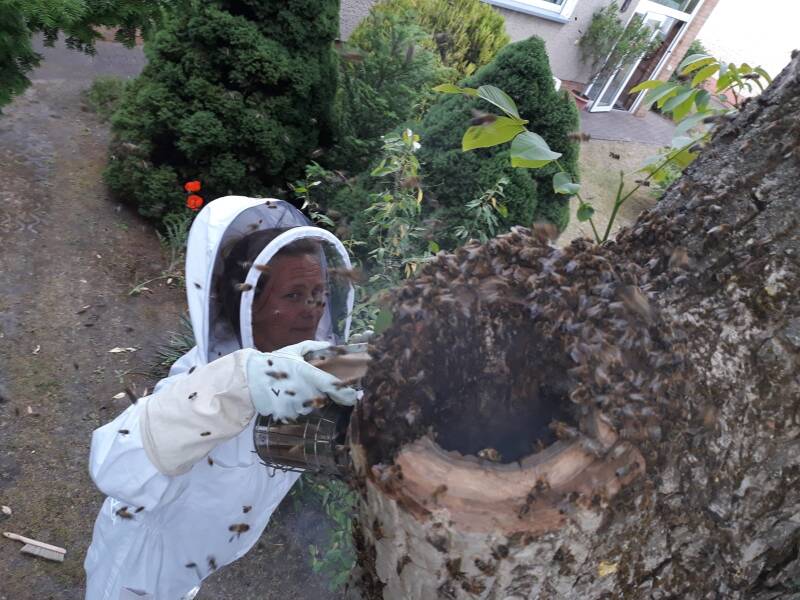 Dieser wäre in der freien Natur nicht überlebensfähig. Sollten Sie einen Schwarm sehen rufen sie mich bitte an. Ich komme dann nach Absprache und fange diesen kostenlos ein.